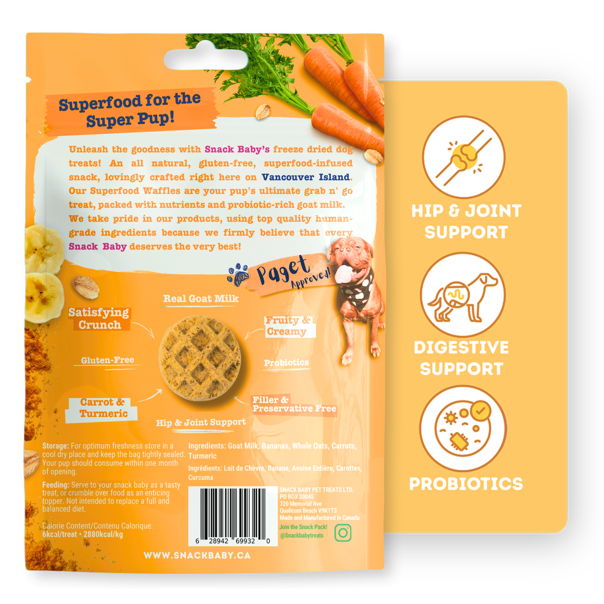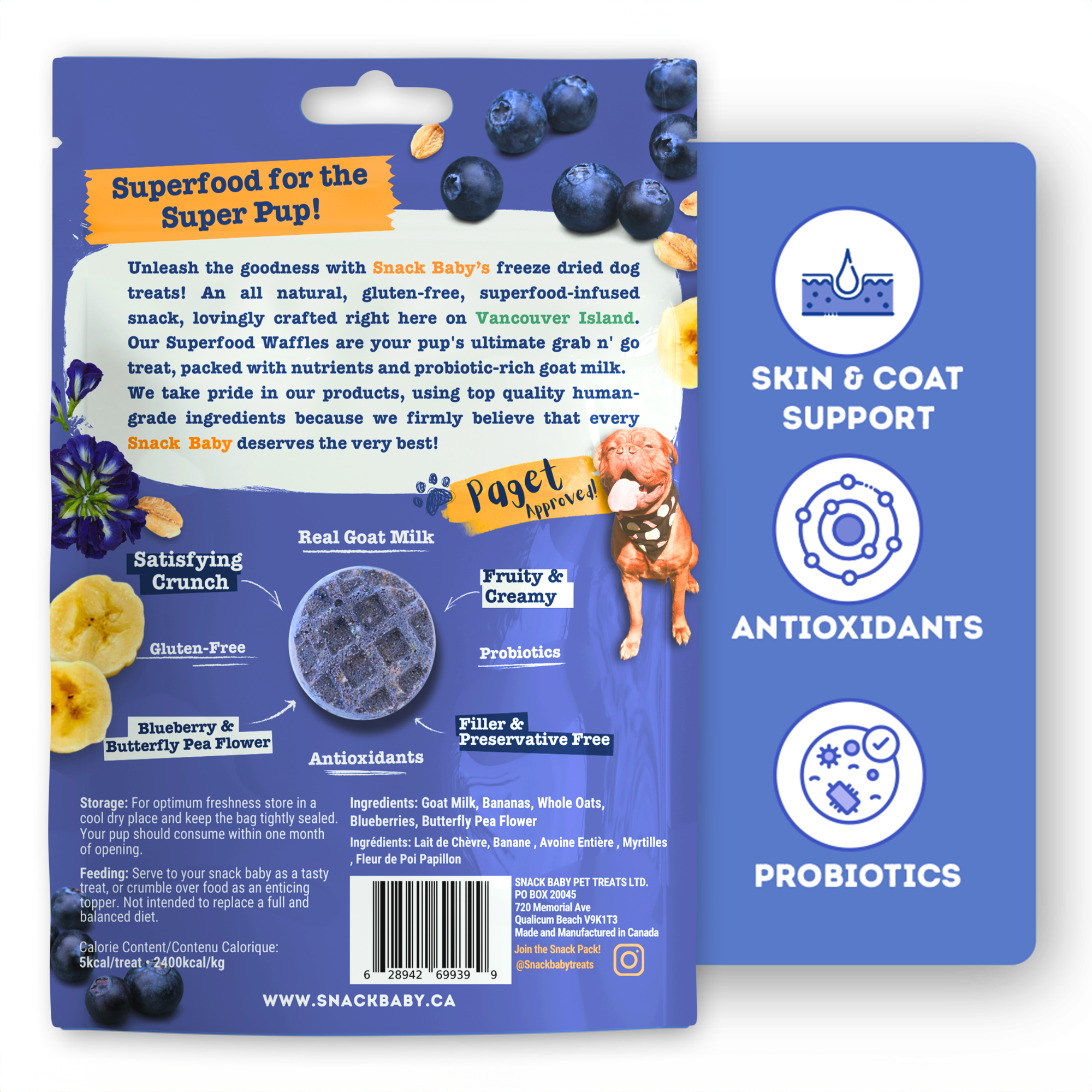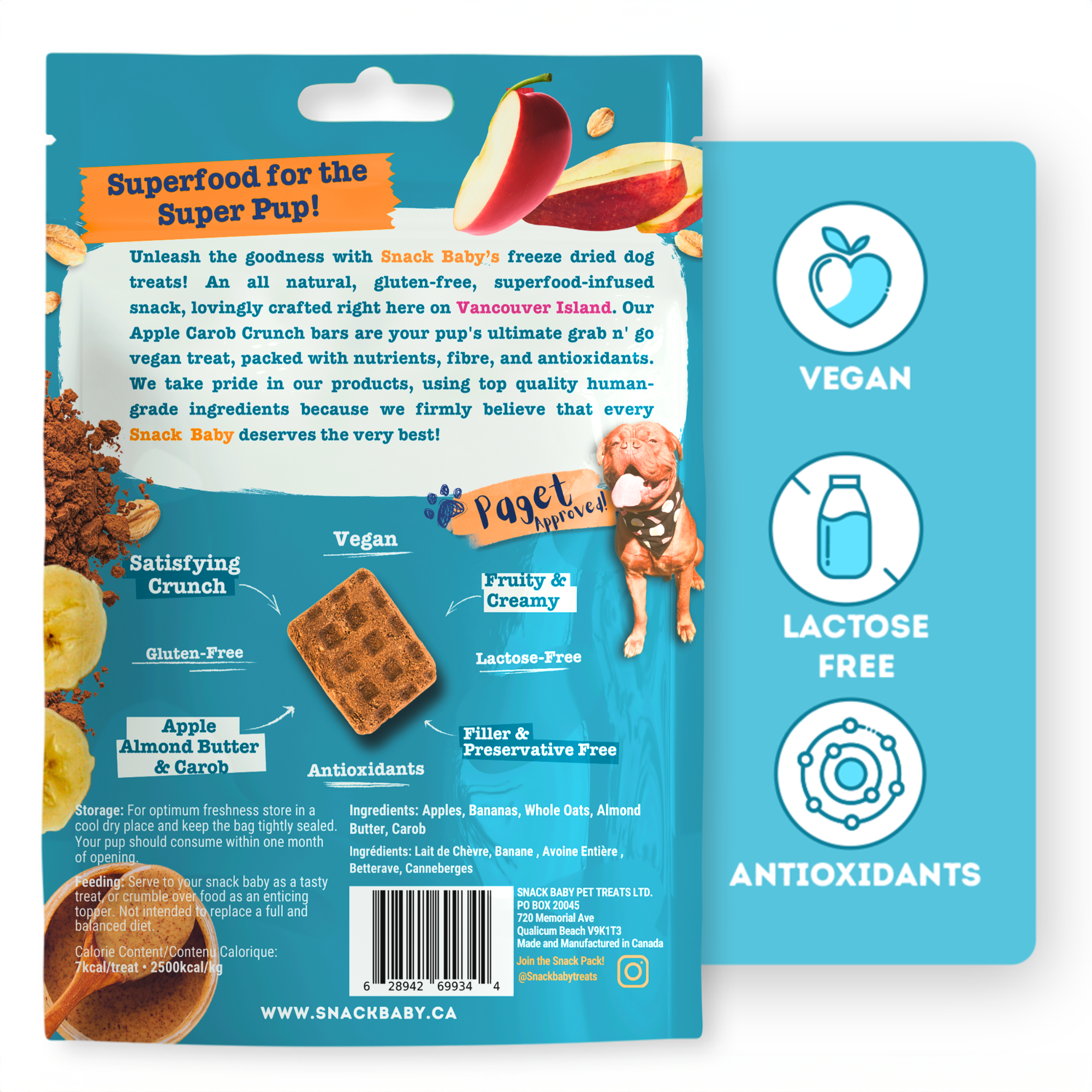 Unleash the goodness with Snack Baby’s freeze dried dog treats! An all natural, gluten-free, superfood-infused snack, lovingly crafted right here on Vancouver Island. Our healthy dog treats are your pup's ultimate grab n' go snack, packed with nutrients and probiotic-rich goat milk. We take pride in our products, using top quality human-grade ingredients because we firmly believe that every Snack Baby deserves the very best!